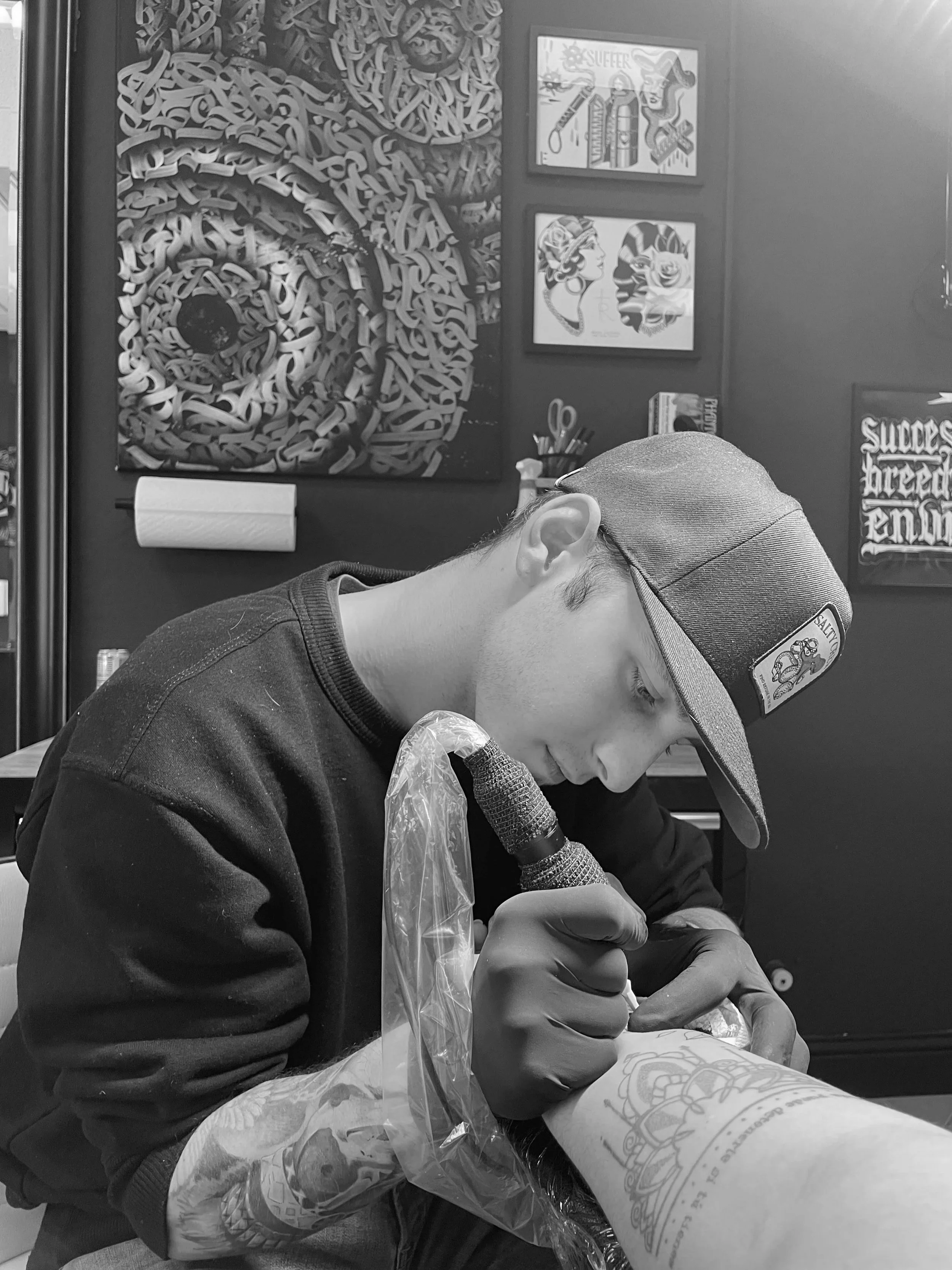 I grew up in the heart of Teton Valley, Idaho surrounded by mountains, open skies, and the kind of scenery that makes you want to create and tattooing became the perfect way to bring all of that together.